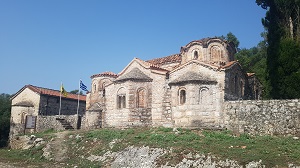 Le monastère d'Agios Demetrios se trouve près du village moderne de Kypseli. Le Katholicon (1242 comme certifié par une inscription taillée dans une brique), préservé en bon état, est une basilique à 3 ailes. Sur trois côtés du naos (excepté l'est), plusieurs structures ont été rajoutées. Les murs sont construits en blocs en pierre et en briques (décoration), et sont recouverts de tuiles. Des chapelles latérales (parecclesia) ont été ajoutées ultérieurement et encore plus tard, à la fin du XIIIe siècle, le narthex a été érigé. Les fresques datent du XVIIe siècles. Quelques travaux d'entretients ont été réalisés au XXe siècle. Le réfectoire (Trapeza) est également préservé en état assez bon. Il est maintenant converti en église et consacré à Saint George.