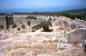 Au-dessus de Kastro, village un peu endormi et superbement isolé au sommet d'une haute colline, se dresse la forteresse franque de Chlémoutsi (Tornèse), construite en 1220-1223 par Geoffroy de Villehardouin sur une butte habitée depuis la préhistoire. Devenue la principale forteresse d'Achaia, c'est l'ouvrage défensif le plus imposant et le mieux conservé du Péloponnèse. Elle fut conquise en 1427 par les Byzantins et démantelé 3 ans plus tard. Après la fin de la domination franche, Chlemoutsi a graduellement perdu de son importance mais a cependant continué à être utilisée par les Grecs, lors des dominations vénitienne et turque, jusqu'à la guerre grecque d'indépendance. Le château a seulement subi quelques petits travaux par les Turcs, préservant ainsi son caractère de fort franc presque intact et est un intéressant exemple de l'architecture fortificative de cette époque dans le Péloponnèse. Elle défendait le grand port de Glarentsa. Offrant une vue étendue sur la plaine d'Elis et la mer ionienne, elle est constituée de deux enceintes avec une entrée au nord-ouest. La partie intérieure comprenait la résidence du prince, une chapelle et une résidence pour la garnison. Elle forme un hexagone irrégulier composé d'une rangée continue de salles autour d'une vaste cour centrale. Dans la partie ente les deux murs, se prolongeant vers le nord et l'ouest, se trouvent les vestiges de bâtiments, de réservoirs et d'une mosquée turque. Deux poternes ouvrent sur l'est et le sud.