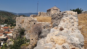 Monastère de Panagia Polemarcha Le monastère en ruines de Polemarcha se trouve sur une plage déserte avec des pins et des oliviers. Il fut fondé par le moine Antonio du monastère d'Agnoundas, souhaitant s'isoler de des confrères moines. Deux jeunes moines plus l'y ont, Nifon (plus tard Patriarche de Constantinople) et Joseph (Iosif). Selon la tradition, ils ont construit tout seuls le premier noyau du monastère vers 1400. Le monastère a atteint son apogée au cours des décennies suivantes avec l'aide du Patriarche Nifon, mais les attaques de pirates successives ont forcé les moines à quitter Polemarcha et à se retirer au monastère de Kalamio, à l'intérieur des terres. Depuis, le monastère n’a plus fonctionné. Aujourd'hui, le catholicon est préservé ainsi que plusieurs cellules et des dépendances. Le catholicon est construit selon le type d'une basilique à trois nefs voûtées avec un toit de tuiles à deux versants. Les nefs sont séparées par des arches basses reposant sur des pilastres. Dans la partie orientale, il y a une abside semi-circulaire, disproportionnellement petite par rapport à la taille de l'église. Une attention particulière a été prêtée à la construction des coupoles, alors que le reste de la maçonnerie est réalisé en pierres brutes. À l'intérieur, il n'y a ni revêtements ni fresques.