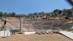 Théâtre Construit au IVe siècle avant JC, le théâtre dispose de 18 rangées de sièges et peut accueillir 2 000 personnes. Il était probablement utilisé en relation avec le culte de Dionysos, dieu grec du vin et de l'extase. En juillet et août, des concerts y sont donnés, principalement par des musiciens grecs. Derrière la partie supérieure du théâtre se trouvent les vestiges de l'ancienne ville.