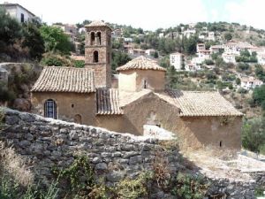 Karytaina est un village aux maisons en pierre, rues étroites, églises byzantines, bâti sur le site antique de Brenthé et couronné par un château franc. Non loin de là, nous avons l'ancienne Gortys et la rivière Loussios dont le nom rappelle que Zeus enfant aurait été baigné dans ses eaux. Dans la région se trouvent les monastères de Prodromos, avec des fresques du XIVe et XVIe s, de Philosophos, décoré de fresques byzantines, et le monastère d'Emialou, accroché à flanc de montagne et décoré de fresques du XVIe s. Ce dernier dans la vallée du Lousios est accessible par un chemin en partie taillé dans la roche et possède une église voûtée décorée de belles fresques en 1608.