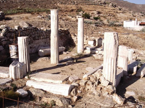 Nous trouvons les restes d'un temple dorique (site encore en fouille) et l’église jumelle (catholique et orthodoxe) d’Agios Artémios.