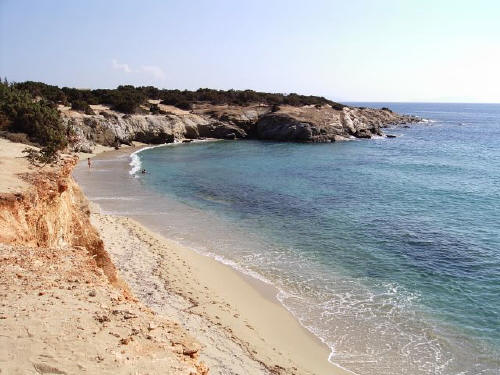 Alyko est une presqu'île bordée de petites criques de sable fin aux eaux cristallines, couleur vert émeraude. Nous pouvons aussi y jouir de belles dunes. Dommage les ruines d'un gigantesque complexe hôtelier inachevé...