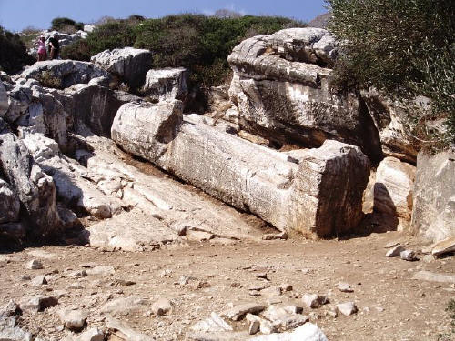 Le village est situé dans un beau paysage (*) et abrite un des deux kouros (bof, celui de Flério est mieux), le plus grand, situé dans la carrière de marbre. Construit au VIème siècle av. J.-C. et jamais achevé, il a une taille de 10,5 mètres. Il se pourrait qu'il ne s'agisse pas d'un Kouros mais bien du dieu Dionnysos. Attention !!! Le site où est situé le Kouros vous surprendra dans un virage peu avant le village (lorsqu'on vient de Hora par la côte Ouest) !!! Plus au Nord, nous trouvons un phare au Cap Stavros (-), le point le plus au nord de l'île.