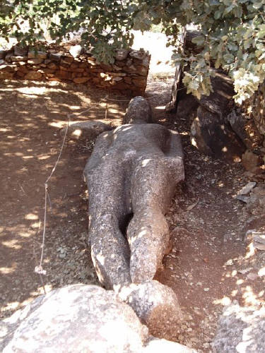 Flério est situé à 3 km de Mélanès. Dans un verger, près d'une source, se trouve un des plus beaux Kouros (**) de l'île reposant sur son dos. Taillé dans du marbre au VIe s. av. J.-C. (570 av. J.-C.), il fait 6,5m et a un pied cassé. Taverne à proximité.
